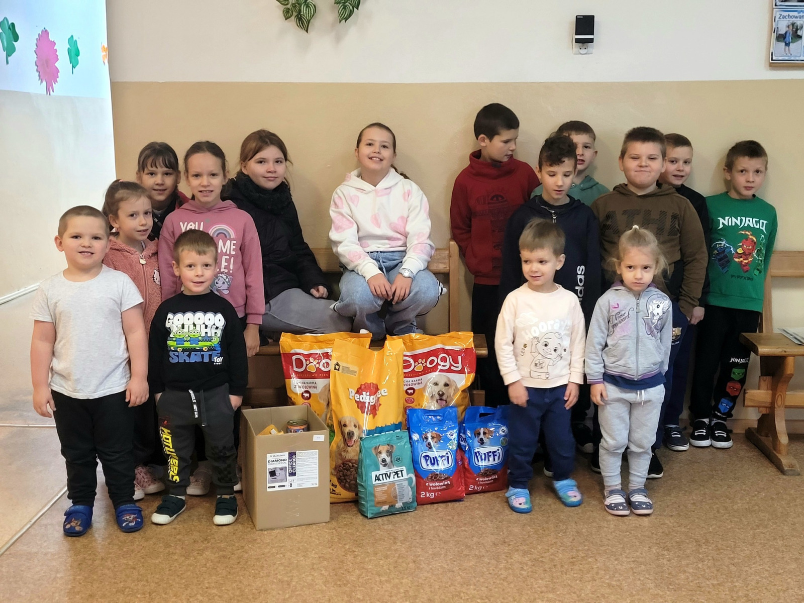 Serdecznie dziękujemy wszystkim zaangażowanym w naszą akcję „Dla Pani i Pana piękna laurka. Zamiast kwiatów i czekoladek smakołyki dla Mruczka i Burka”. Zebraliśmy cały samochód karmy, która została podzielona pomiędzy schronisko dla psów Cyganowo w Konstantynówce i kociarnię w Suwałkach prowadzoną przez Fundację Kota Rubika.