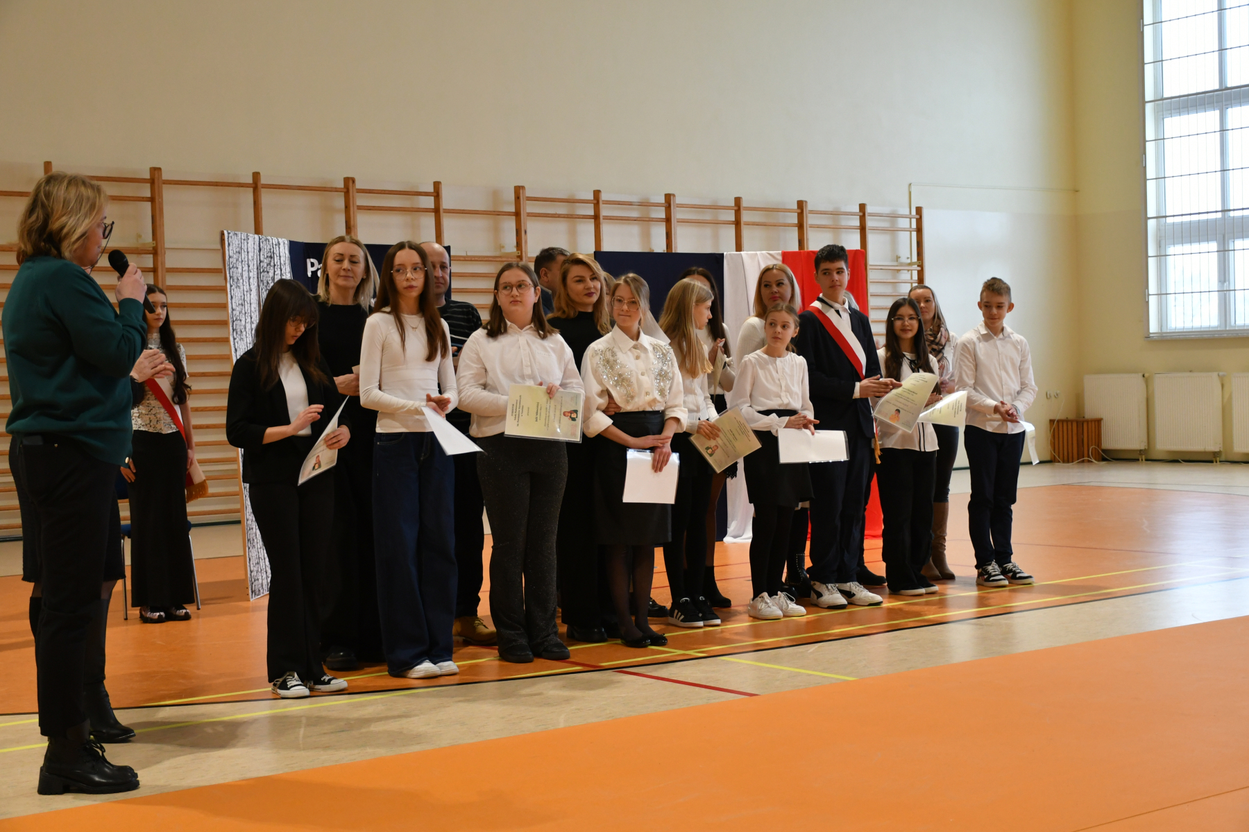 Dnia 16.01.2026 r. zebraliśmy się, by uczcić 163. rocznicę wybuchu Powstania Styczniowego – jednego z najważniejszych i najbardziej tragicznych zrywów niepodległościowych w historii naszego narodu. Uczniowie naszej szkoły przygotowali montaż słowno-muzyczny, by przybliżyć nam wydarzenia sprzed lat oraz oddać hołd bohaterom. Dla naszej społeczności szkolnej ten dzień jest szczególnie ważny, ponieważ Powstańcy Styczniowi są patronami naszej szkoły. Przy okazji tej uroczystości zostały przyznane stypendia za wyniki w nauce i sporcie, oraz nagrody za frekwencję i czytelnictwo.