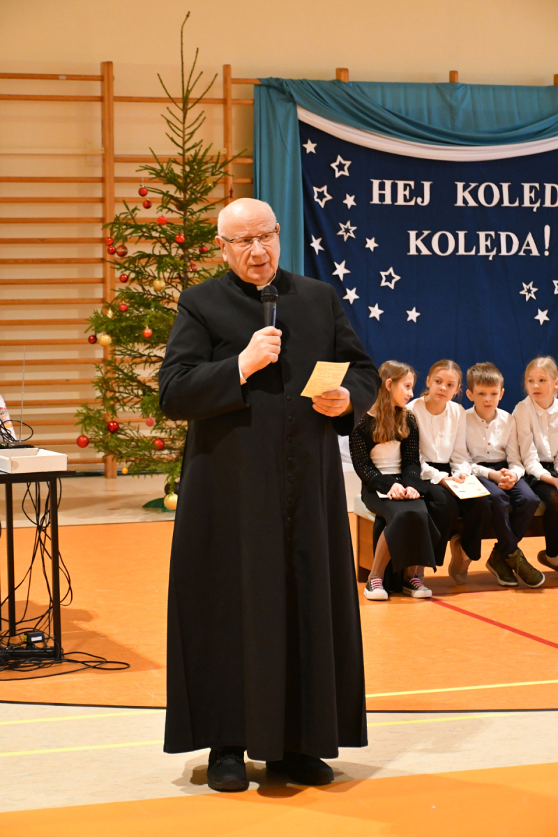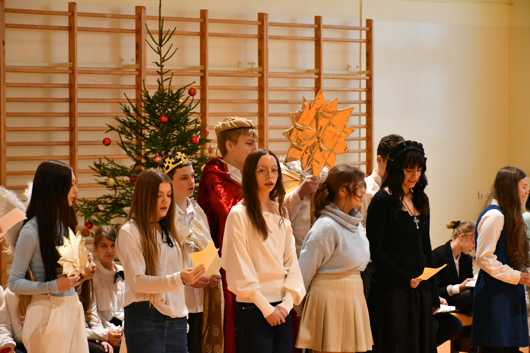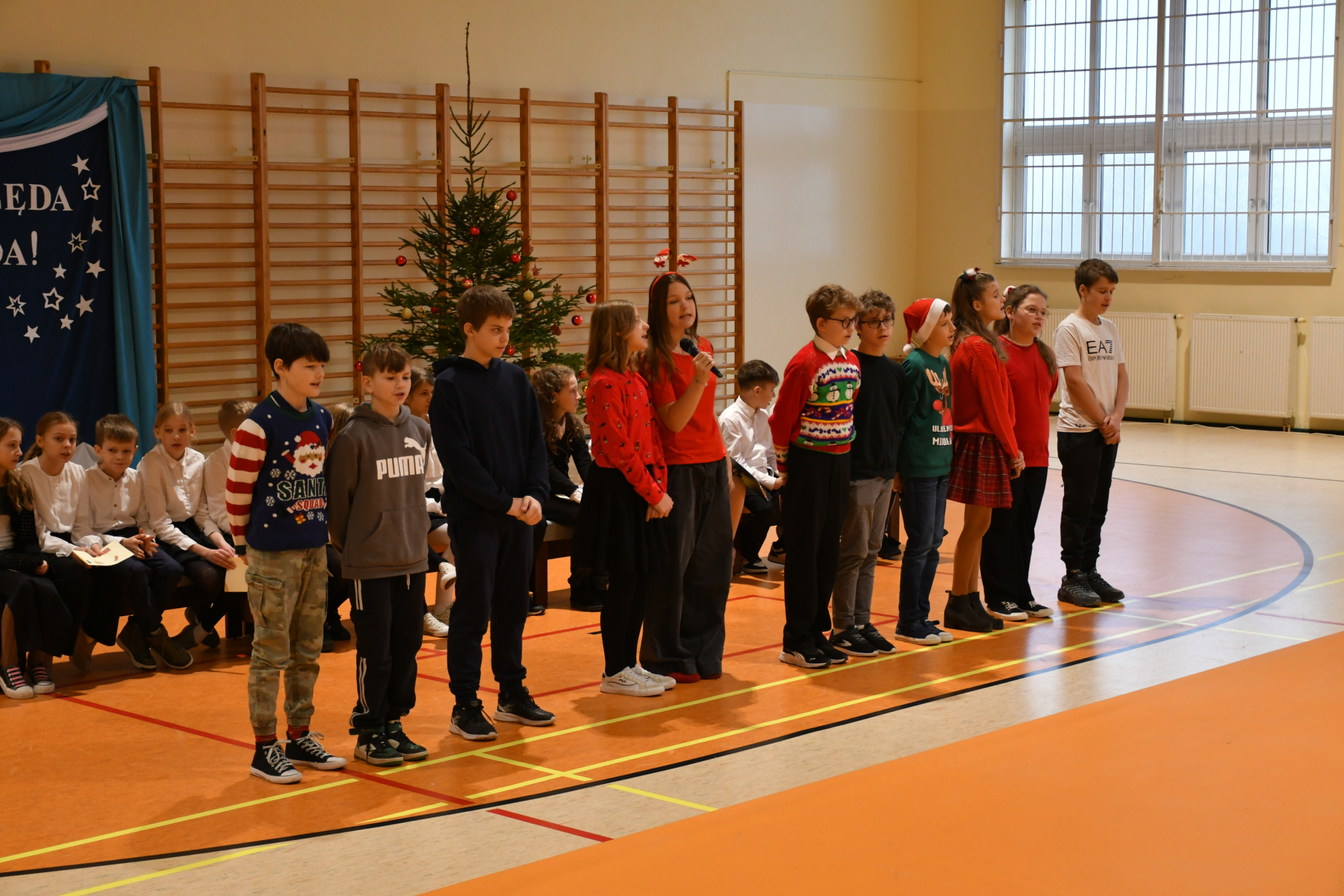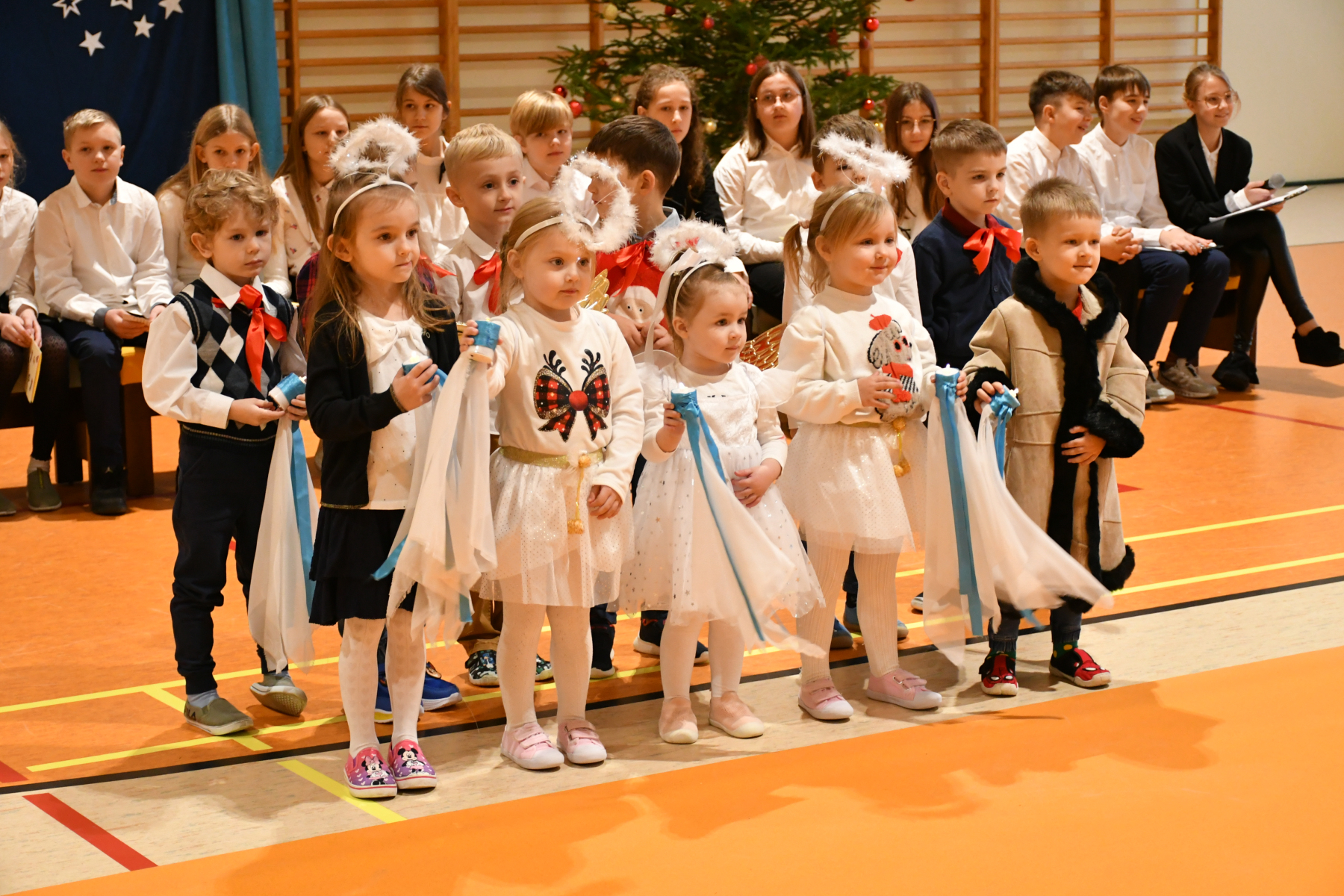 19 grudnia w naszej szkole odbyło się uroczyste spotkanie wigilijne, które zgromadziło Dyrekcję, Grono Pedagogiczne, rodziców, uczniów oraz zaproszonych gości. Pani Bożena Urban z uczniami klas V i VII wprowadziła nas w świąteczny nastrój. Dodatkowo, każda klasa zaśpiewała wybraną kolędę lub pastorałkę. Spotkanie zakończyliśmy życzeniami i łamaniem się opłatkiem.