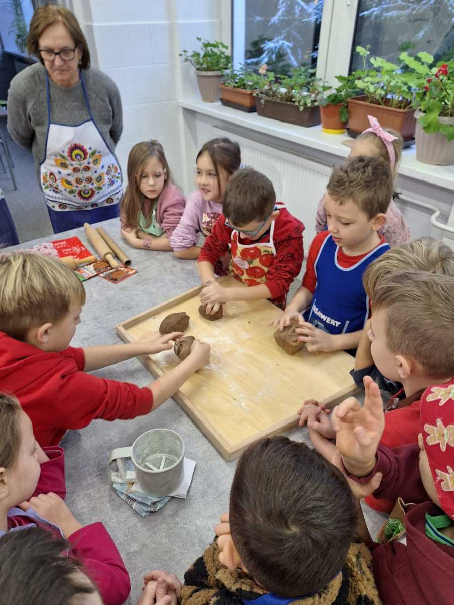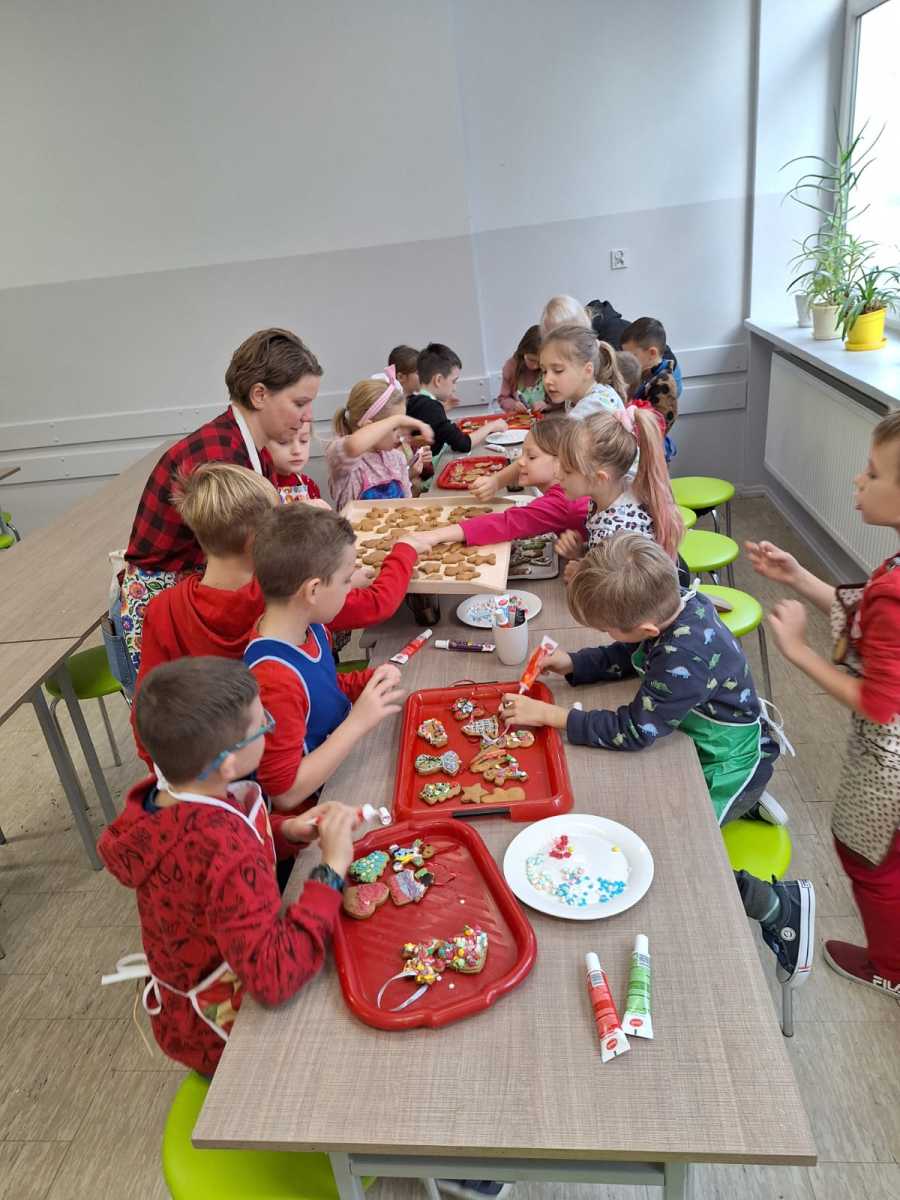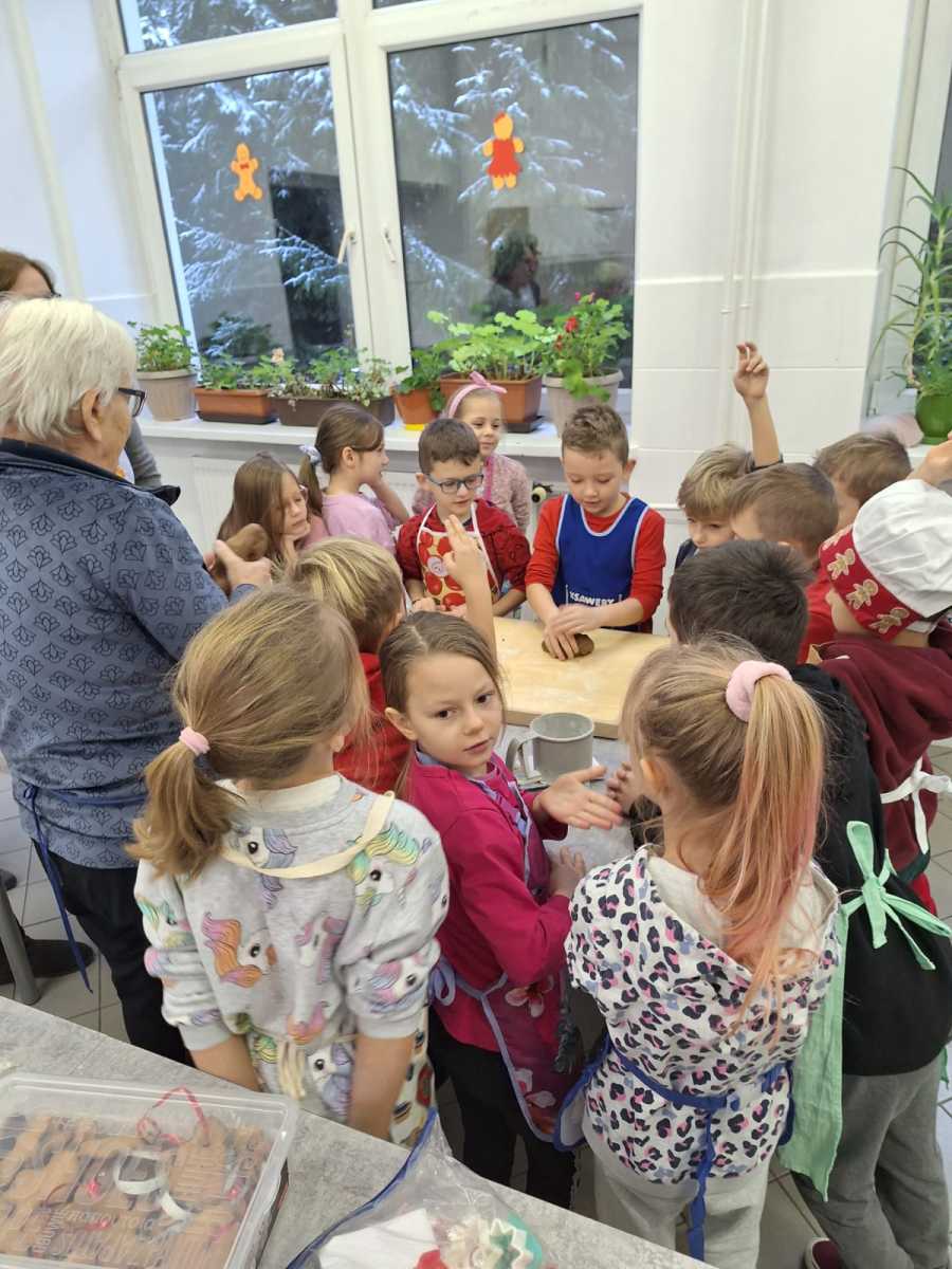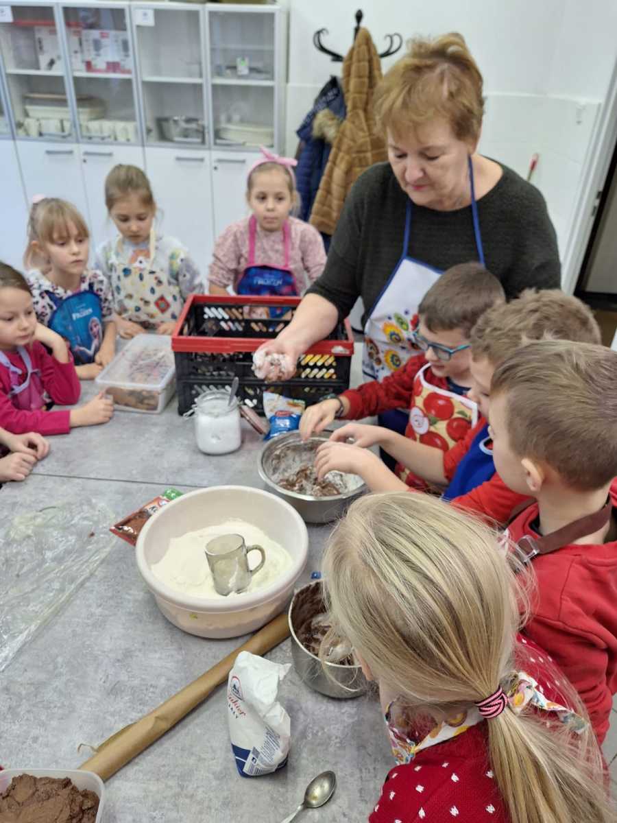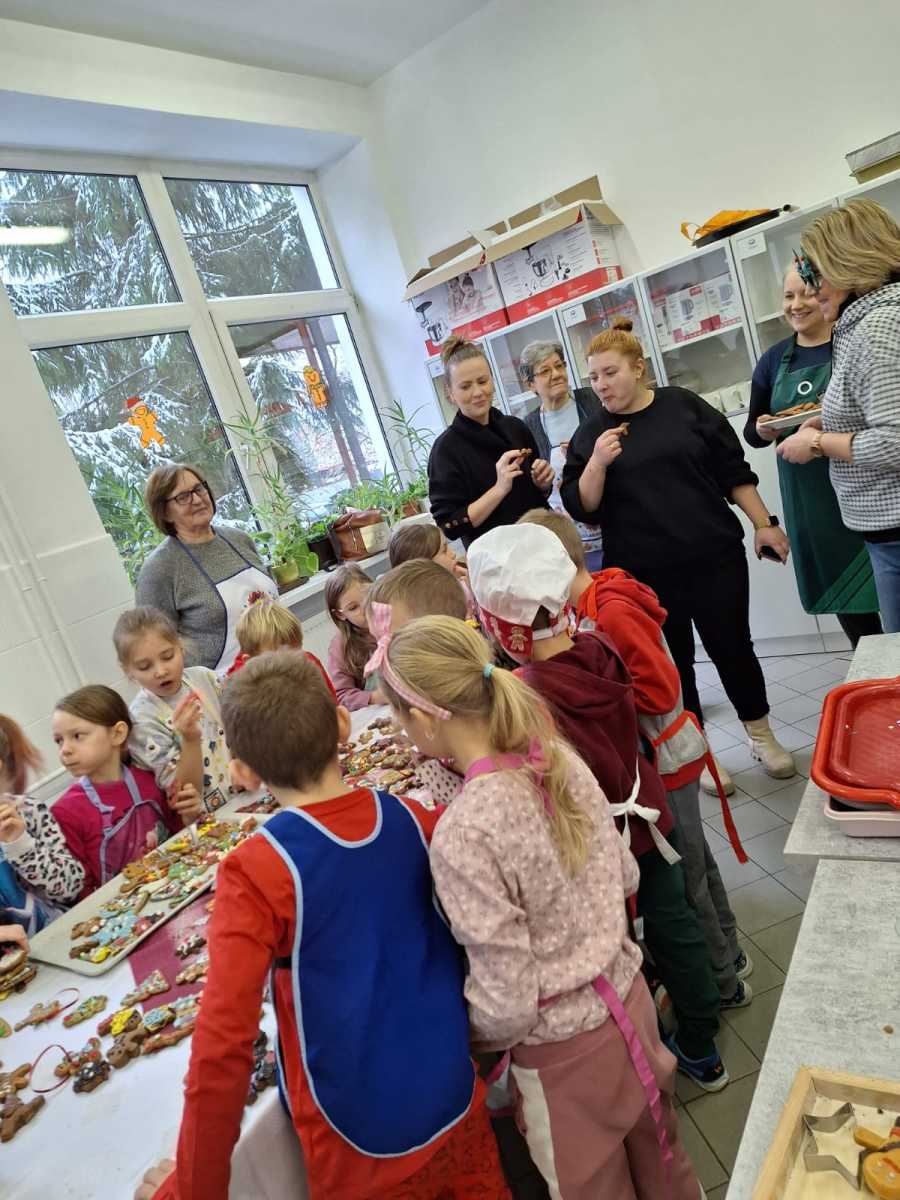 Dnia 04.12.2023r. uczniowie klasy I uczestniczyli w zajęciach kulinarnych zorganizowanych we współpracy z paniami z Koła Gospodyń Wiejskich oraz przedstawicielami rodziców. Dziękujemy za wspólne przygotowanie i wypiekanie świątecznych pierniczków. Część przepysznych i pięknie udekorowanych wypieków przekazaliśmy na szkolną akcję charytatywną.