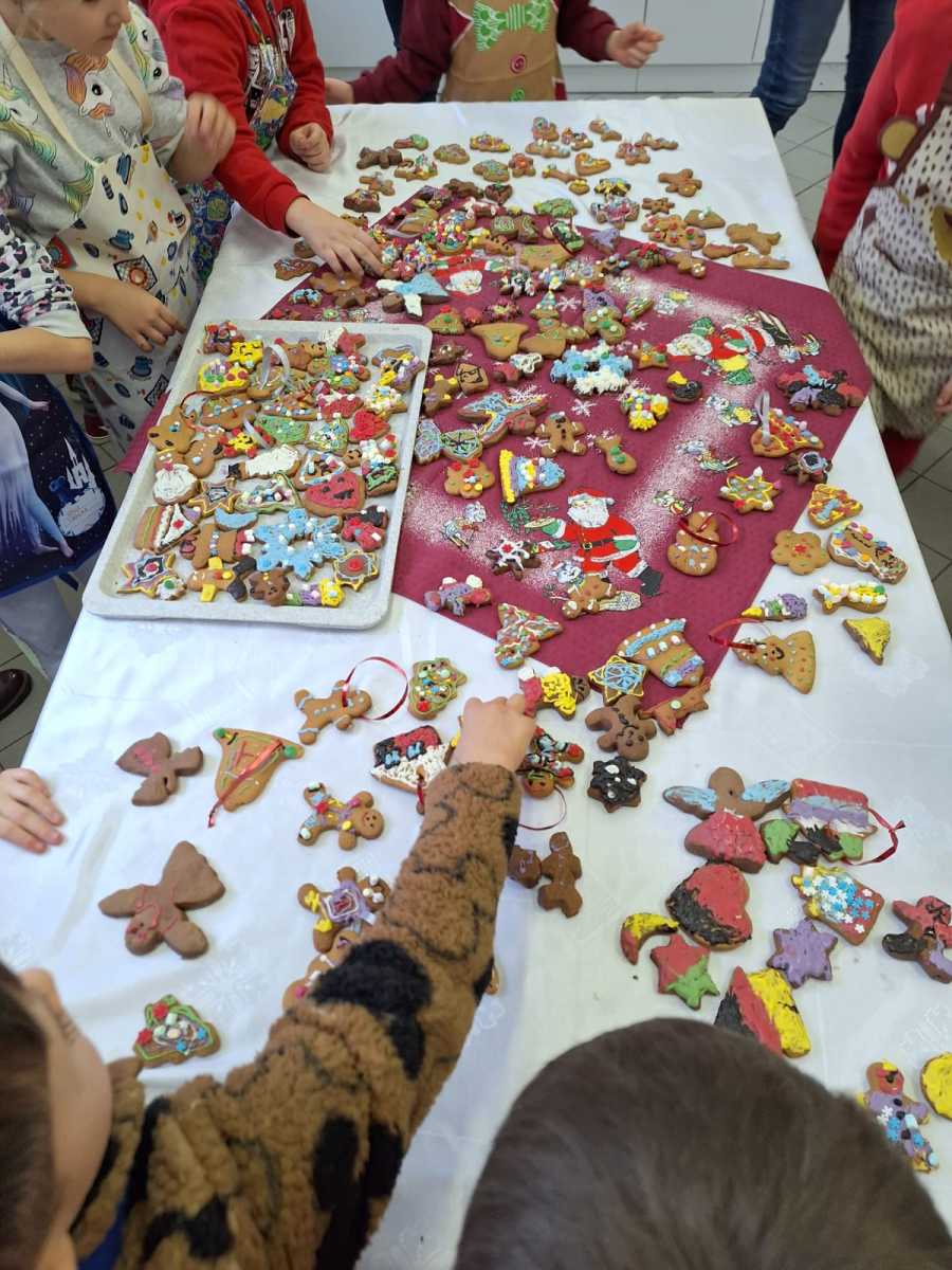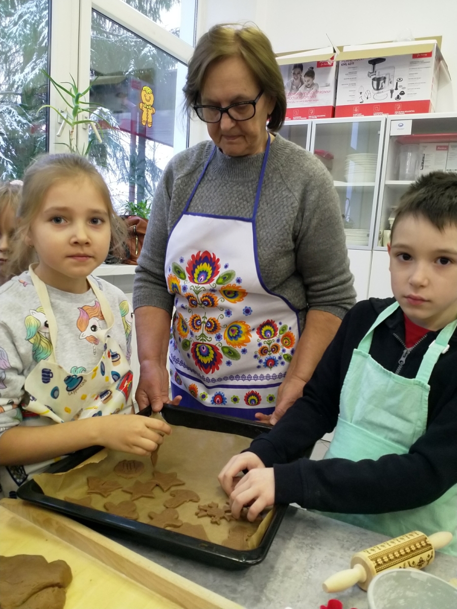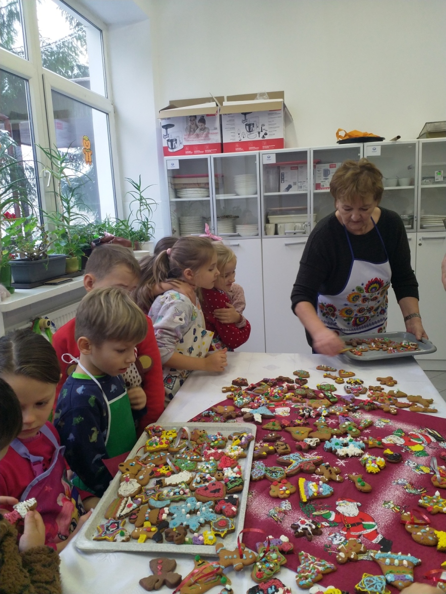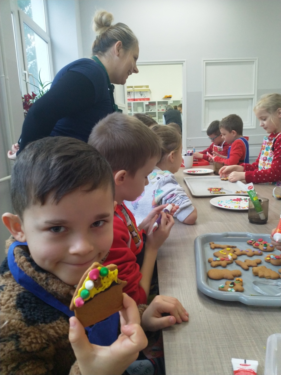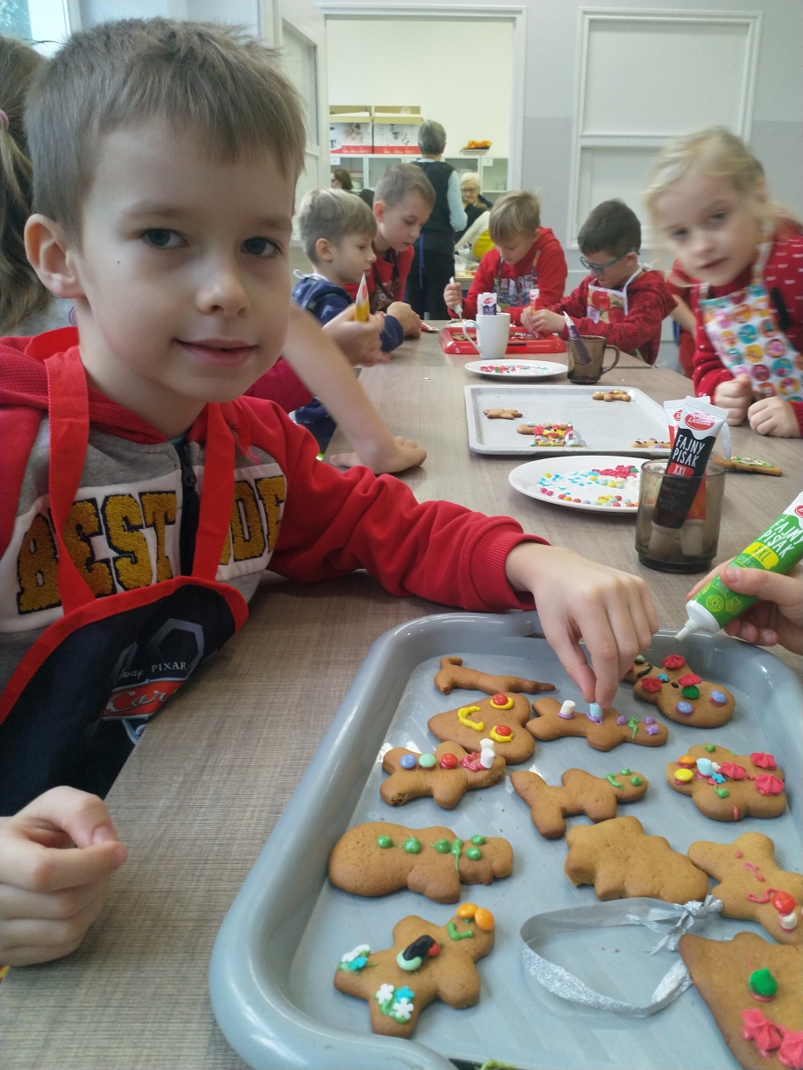 Dnia 04.12.2023r. uczniowie klasy I uczestniczyli w zajęciach kulinarnych zorganizowanych we współpracy z paniami z Koła Gospodyń Wiejskich oraz przedstawicielami rodziców. Dziękujemy za wspólne przygotowanie i wypiekanie świątecznych pierniczków. Część przepysznych i pięknie udekorowanych wypieków przekazaliśmy na szkolną akcję charytatywną.