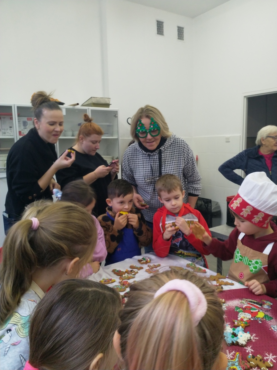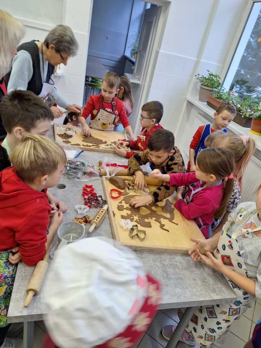 Dnia 04.12.2023r. uczniowie klasy I uczestniczyli w zajęciach kulinarnych zorganizowanych we współpracy z paniami z Koła Gospodyń Wiejskich oraz przedstawicielami rodziców. Dziękujemy za wspólne przygotowanie i wypiekanie świątecznych pierniczków. Część przepysznych i pięknie udekorowanych wypieków przekazaliśmy na szkolną akcję charytatywną.